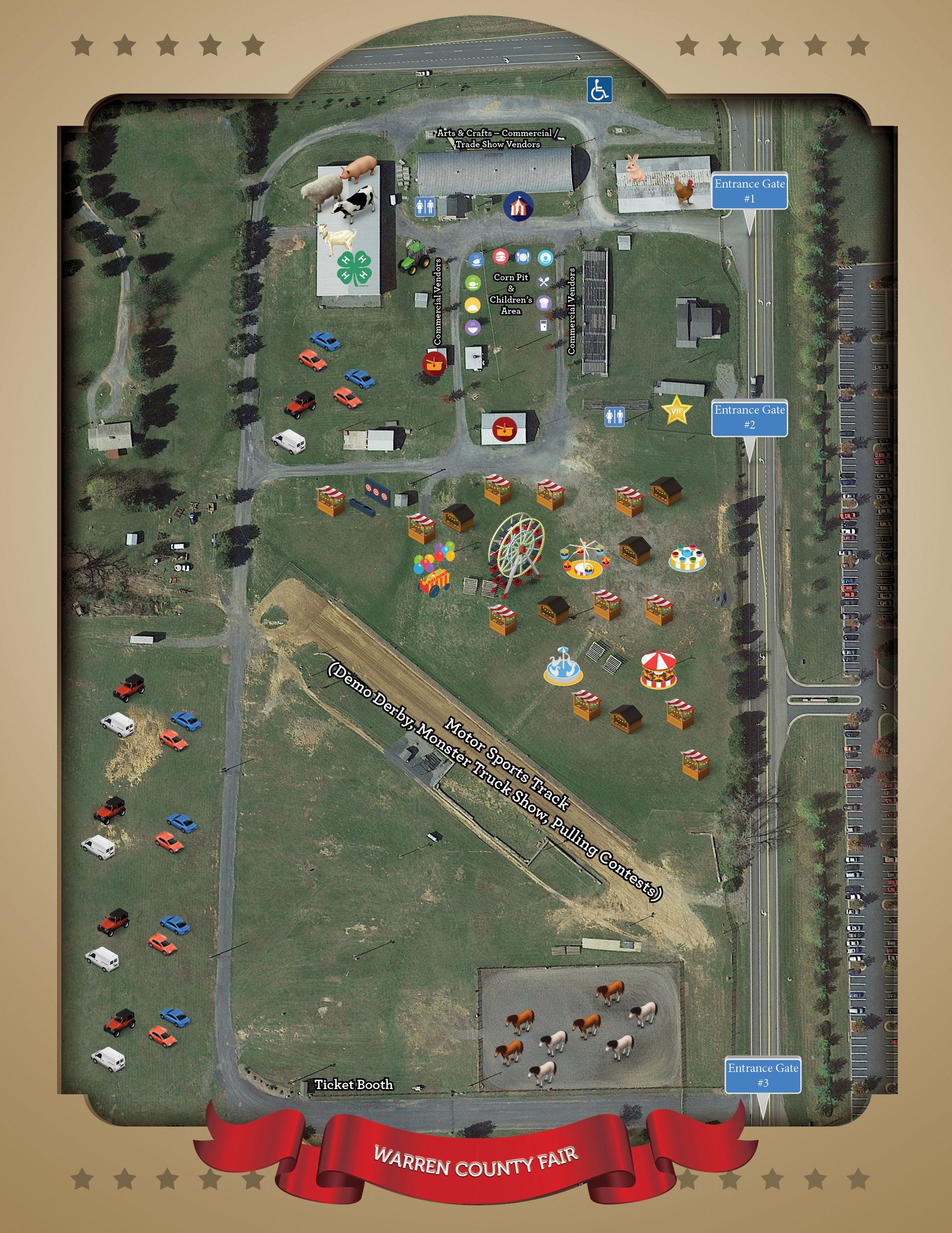 There will be a Visitor's Guide at all gates and guest services at the Fair that will include a printed version of the map.